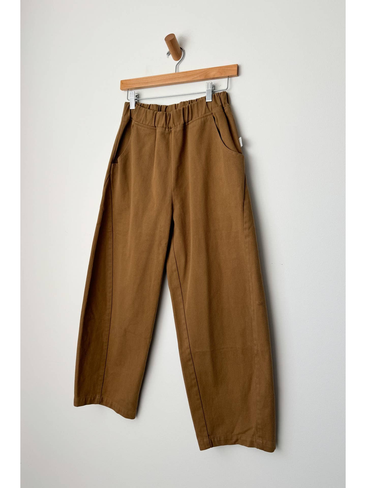 These are the pants we love to live in! She has thoughtful design details like an elastic high waist that gives you a room to breath, slightly curved leg shape, cropped length to show off your favorite socks and shoes, unique side panels and deep pockets. The heavy-weight canvas material likely adds durability and gives them a structured look. The Arc pants would make a great addition to everyone's wardrobe and complement to all the Le Bon Shoppe pieces you own!