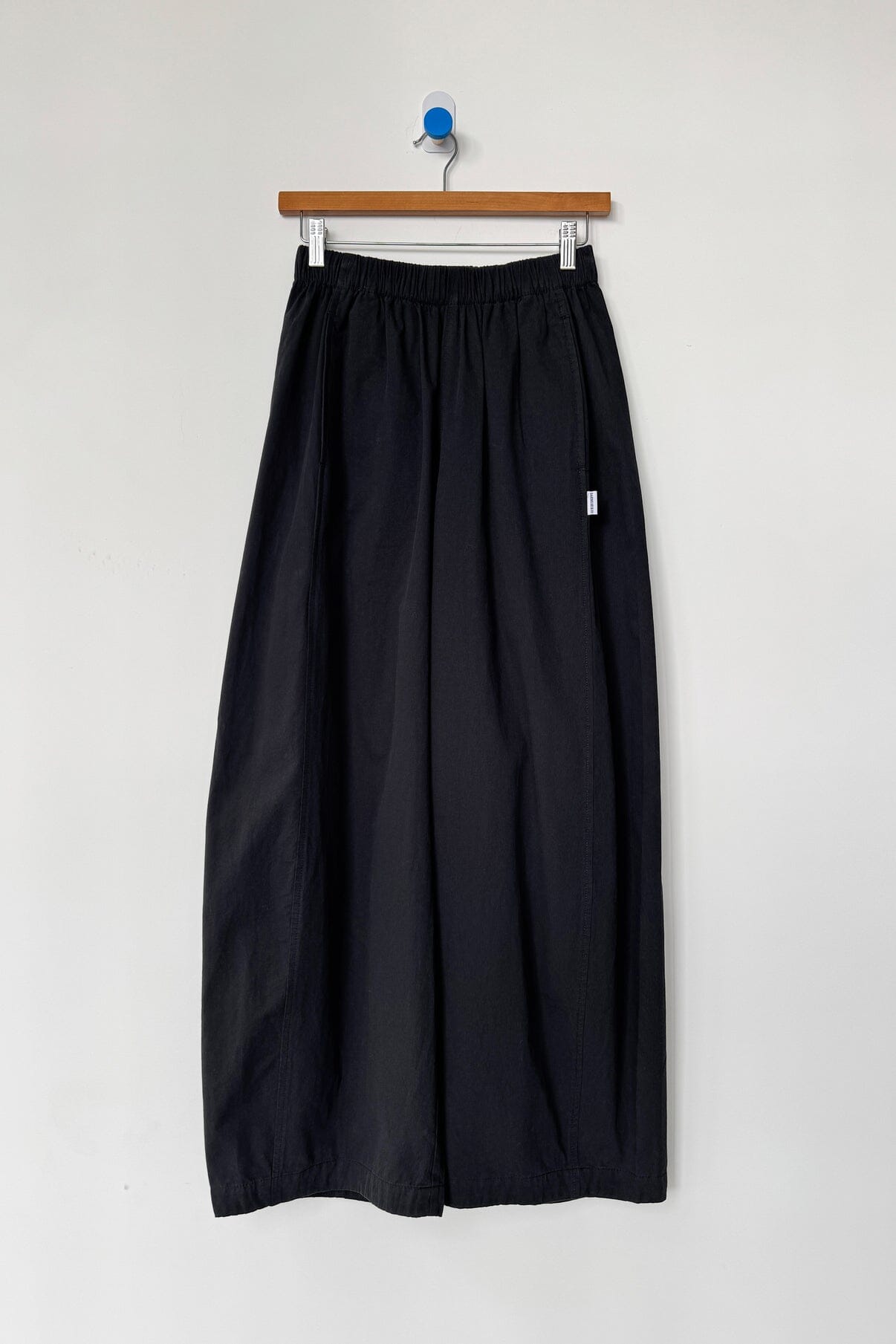 Billowy pants made to move with you throughout the day. Crafted from a light yet durable and elevated cotton they're the kind of pair you can wear anywhere, from casual moments to polished looks. Designed with an elastic waist and side pockets, their unique leg shape sets them apart. A third side panel adds extra volume, creating a sculptural silhouette that’s relaxed, airy, and full of movement.