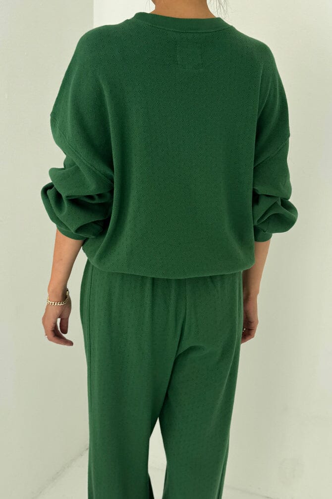 A lightweight layer for shifting seasons. The Pointelle Core Sweatshirt is made from ultra-soft jersey pointelle, offering just the right mix of breathability and warmth. With its relaxed drape and voluminous sleeves, it’s a refined take on cozy.